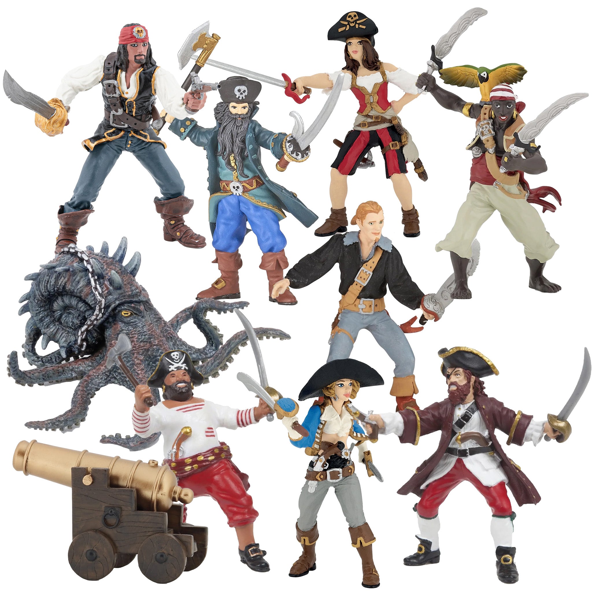 This set includes 10 Papo Pirates and accessories: