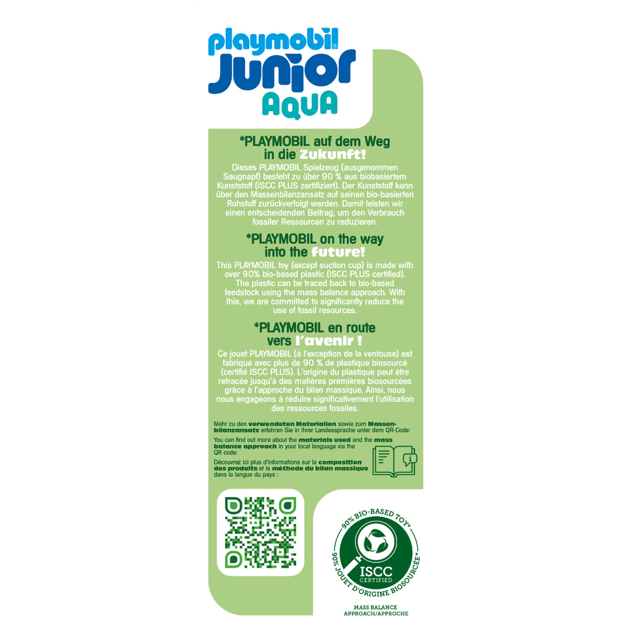 This Playmobil Junior playset (except suction cup) is made with over 90% bio-based plastic (ISCC PLUS certified). The plastic can be traced back to bio-based feedstock using the mass balance approach. With this, we are committed to significantly reduce the use of fossil resources.