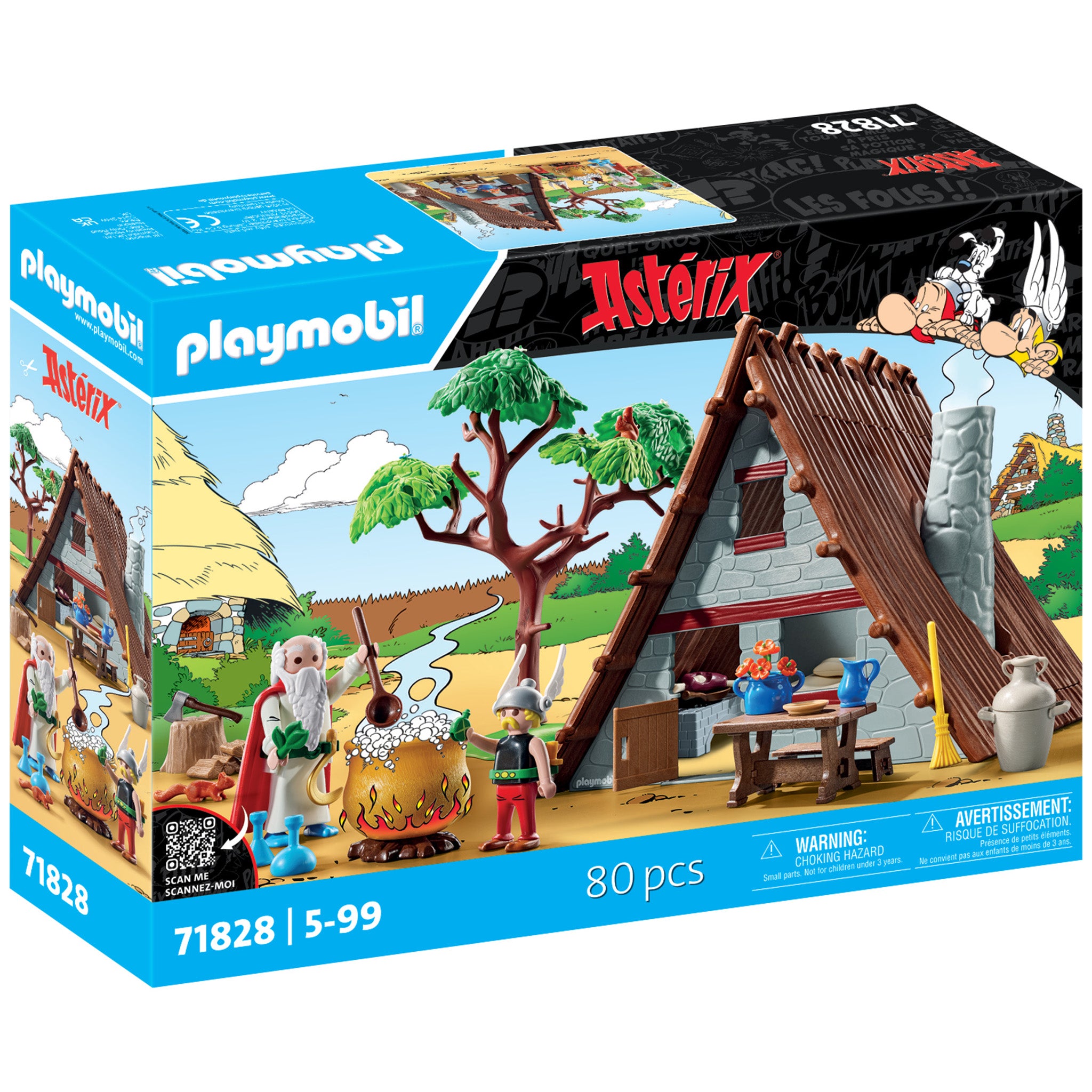 Contents: Figures: Asterix, Getafix. Animals: 2 squirrels. Accessories: Asterix hut, 1 Asterix helmet with wings, 1 drinking bottle, 1 dagger, 1 belt loop, 1 stool, 1 bed, 1 pillow, 1 wooden table, 1 cooking area , 1 pan set, 1 broom, 1 bench, 1 chopping block, 1 axe, 2 logs of wood, 1 bread, 1 plate, 1 bowl, 2 pans, 1 flower bush, 1 tree, 1 kettle, 2 bottles, 1 soup spoon, 1 sickle, 1 cape.