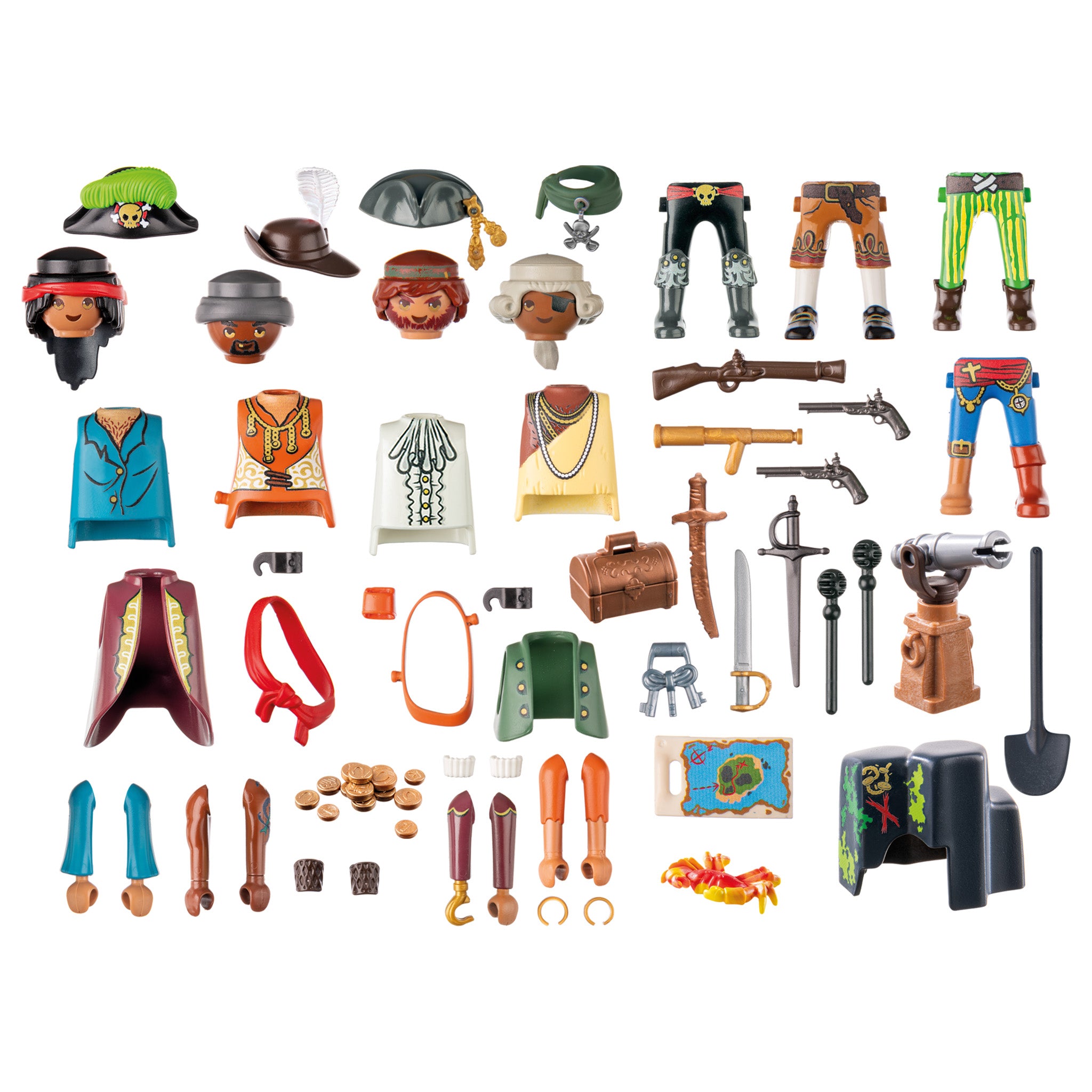 Unleash your imagination with the My Figures: Pirates set from Playmobil. This versatile playset allows you to create funny pirate characters according to your imagination. Heads, bodies, arms, and legs of the figures can be swapped in an instant, creating new characters every time. Fun as colourful as life itself with countless figure combinations. Additionally, My Figures can also be combined with all figure parts from Playmobil Figure Surprise Bags.