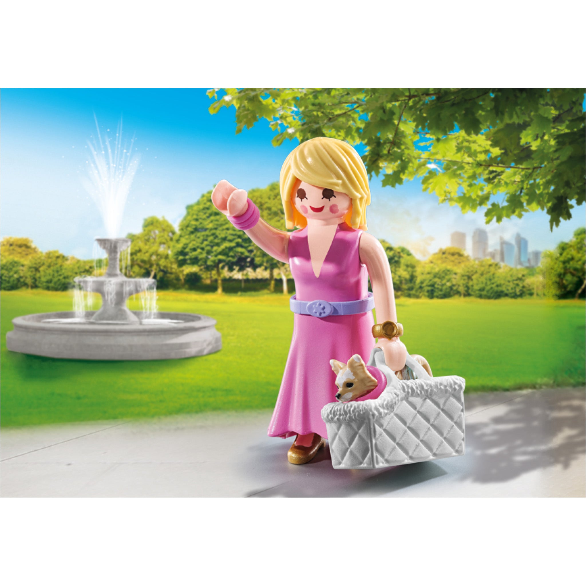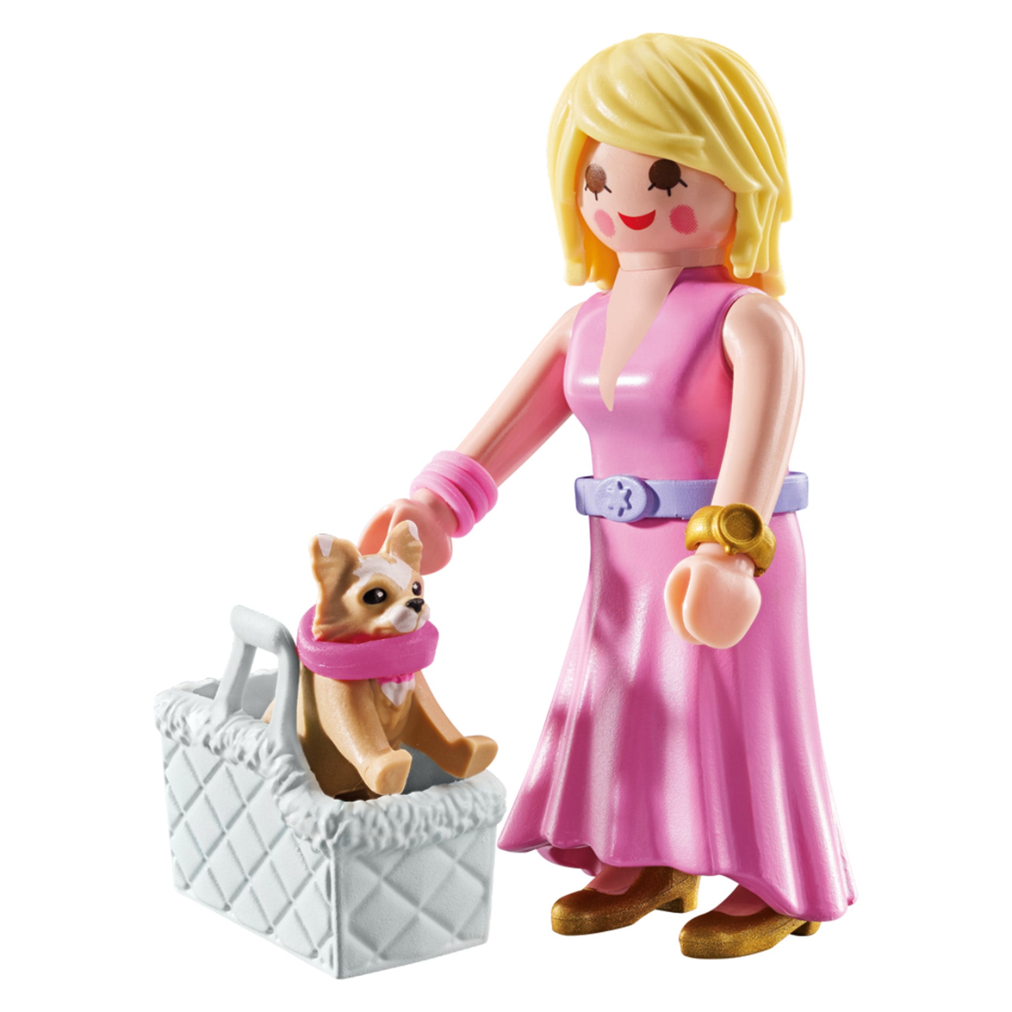 Contents: Figures: 1 woman, Animals: 1 Chihuahua, Accessories: 1 bag, 1 wristwatch, 3 silicone wristbands, 1 dog collar.