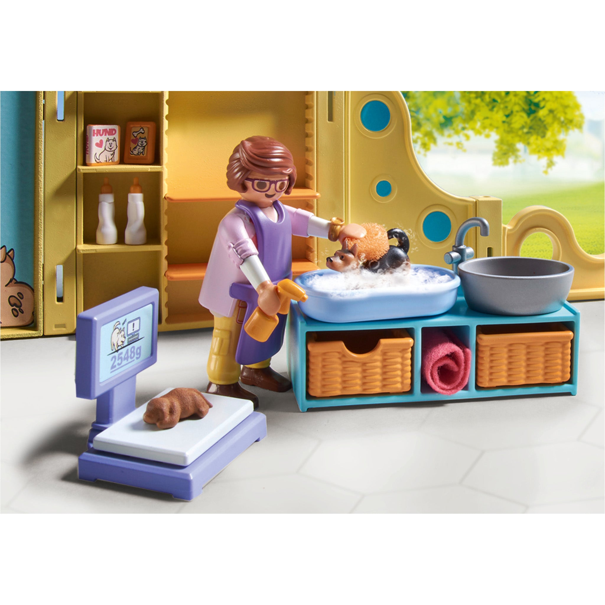 Welcome to the new puppy house, where each pup thrives under supervision. At the Playmobil Puppy Care Center, feeding, grooming, and playtime unfold seamlessly. Cozy beds, a washing station, and fun accessories ensure every puppy’s happiness. The included double lead promises lively strolls, while baskets and shelves keep everything tidy. Combine with the Playmobil Animal Hotel to expand the excitement, giving young dog lovers endless ways to nurture their pets.