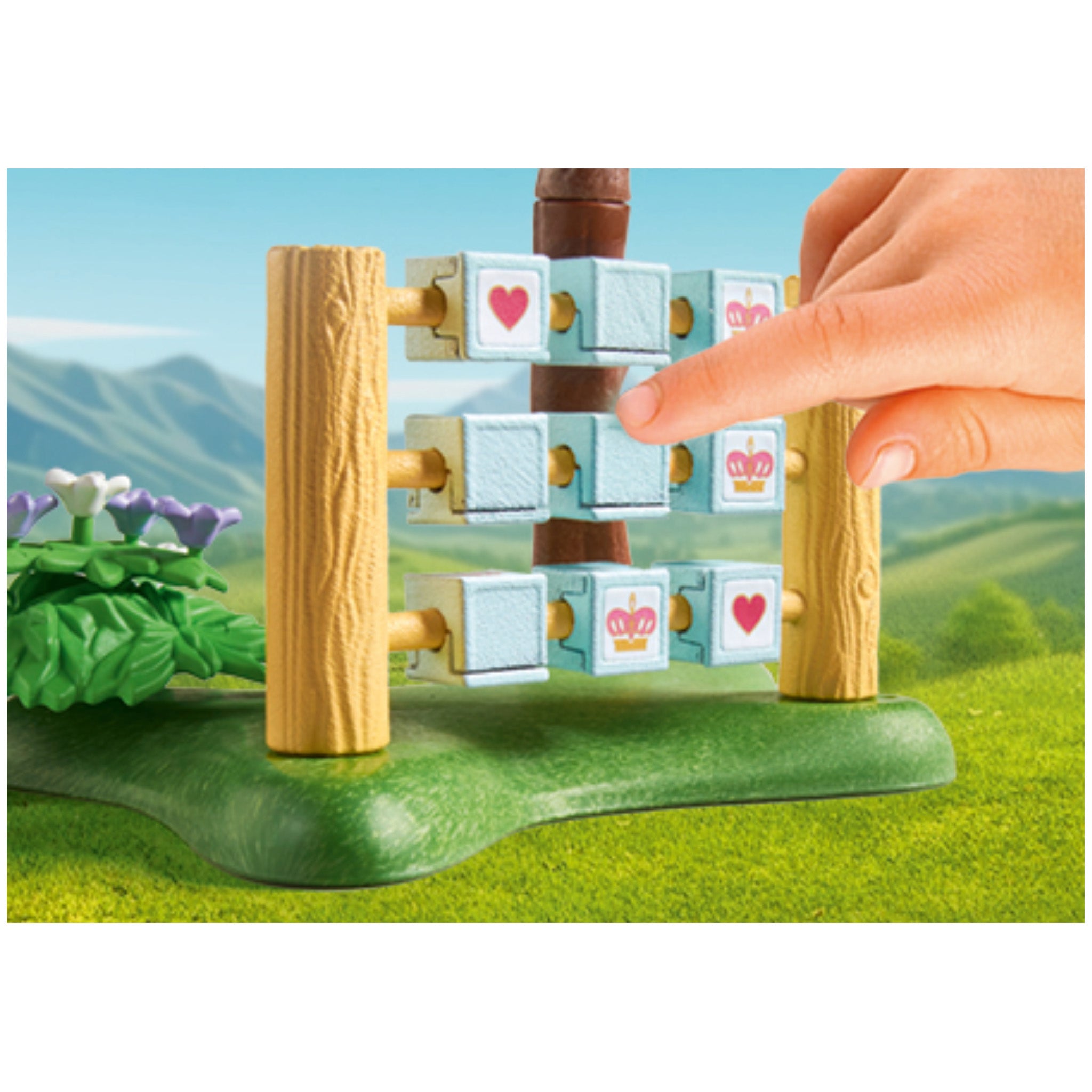 In the enchanting garden of the Princess Castle, the royal children gather to play. They enjoy a whimsical croquet game with colorful balls and strategize on the interactive dice fence. Cute squirrels and birds add charm to every activity, while blooming rose arches and a treasure chest spark creative storytelling. This detailed PLAYMOBIL Garden set inspires joyful role-playing fun.