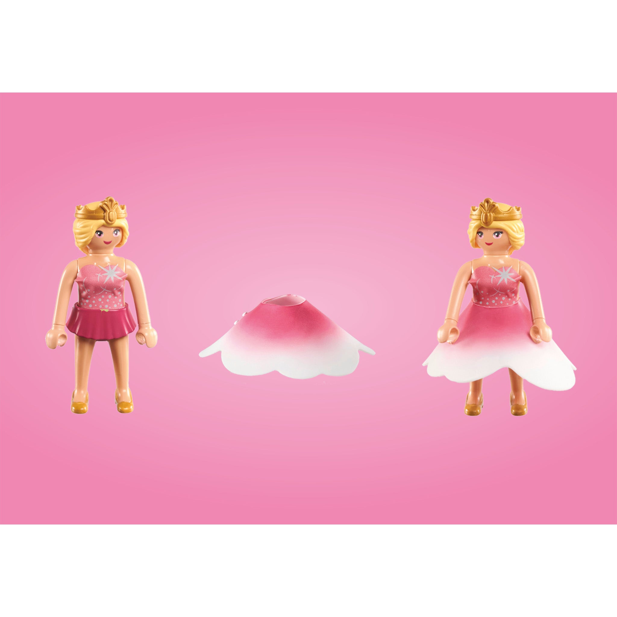 Celebrate the magical birthday of the Princess's sweet Pegasus foal with this enchanting Playmobil set. Enjoy combing the foal, feeding it crisp apples, and watch the charming Princess hold a pretty floating balloon. The Pegasus foal tilts its head in delight as the cloud pedestal creates a dreamy setting. The princess shines in her elegant removable silicone skirt and crown, adding this fairytale celebration.