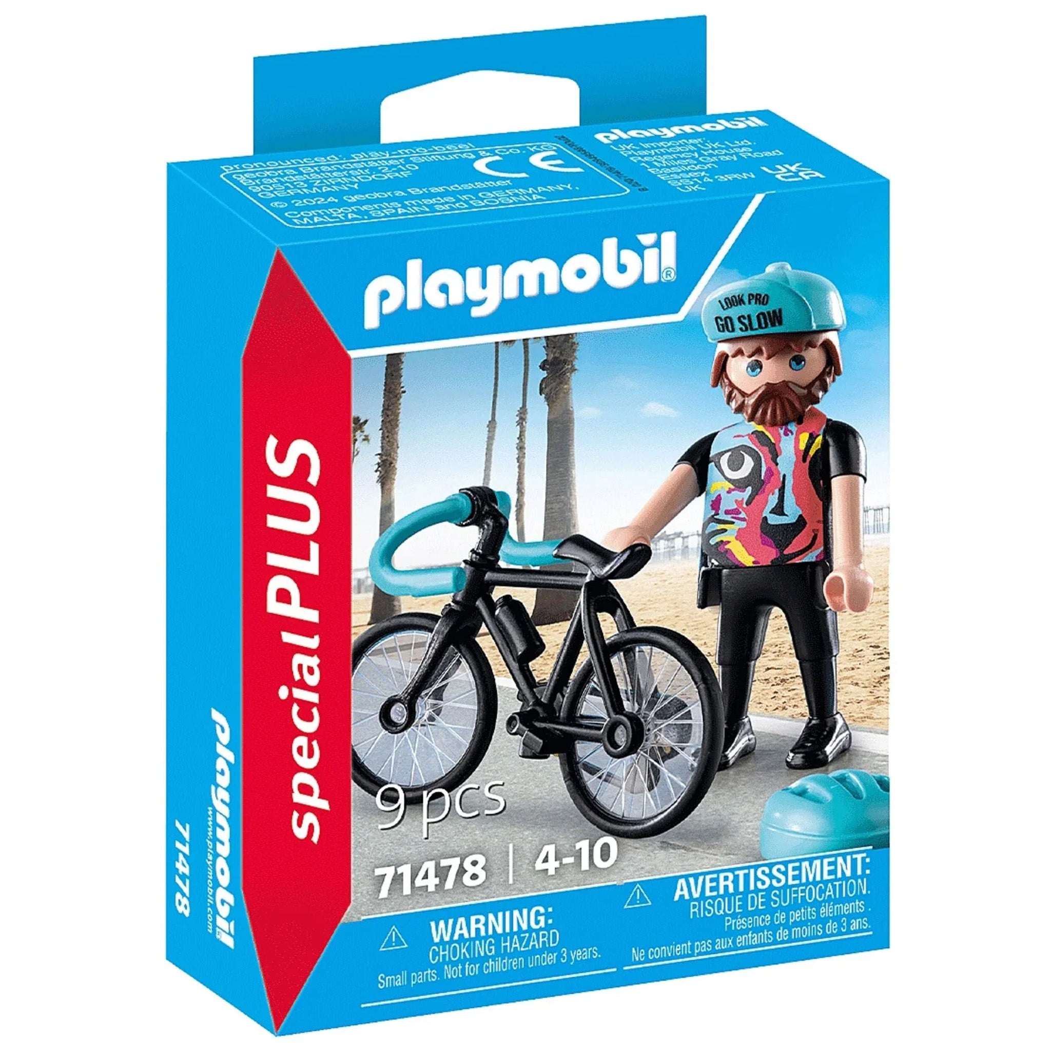 Playmobil Special Plus play figure racing cyclist Paul Ripke with bike and helmet.