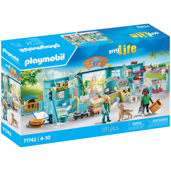 At the Playmobil Animal Hotel, every furry and feathered friend enjoys care while their owners relax away. This delightful set features cozy kennels for dogs, hammocks for cats, and a playful perch for parrots. Keep pups fresh at a wash station, and add personal flair with name tags.
