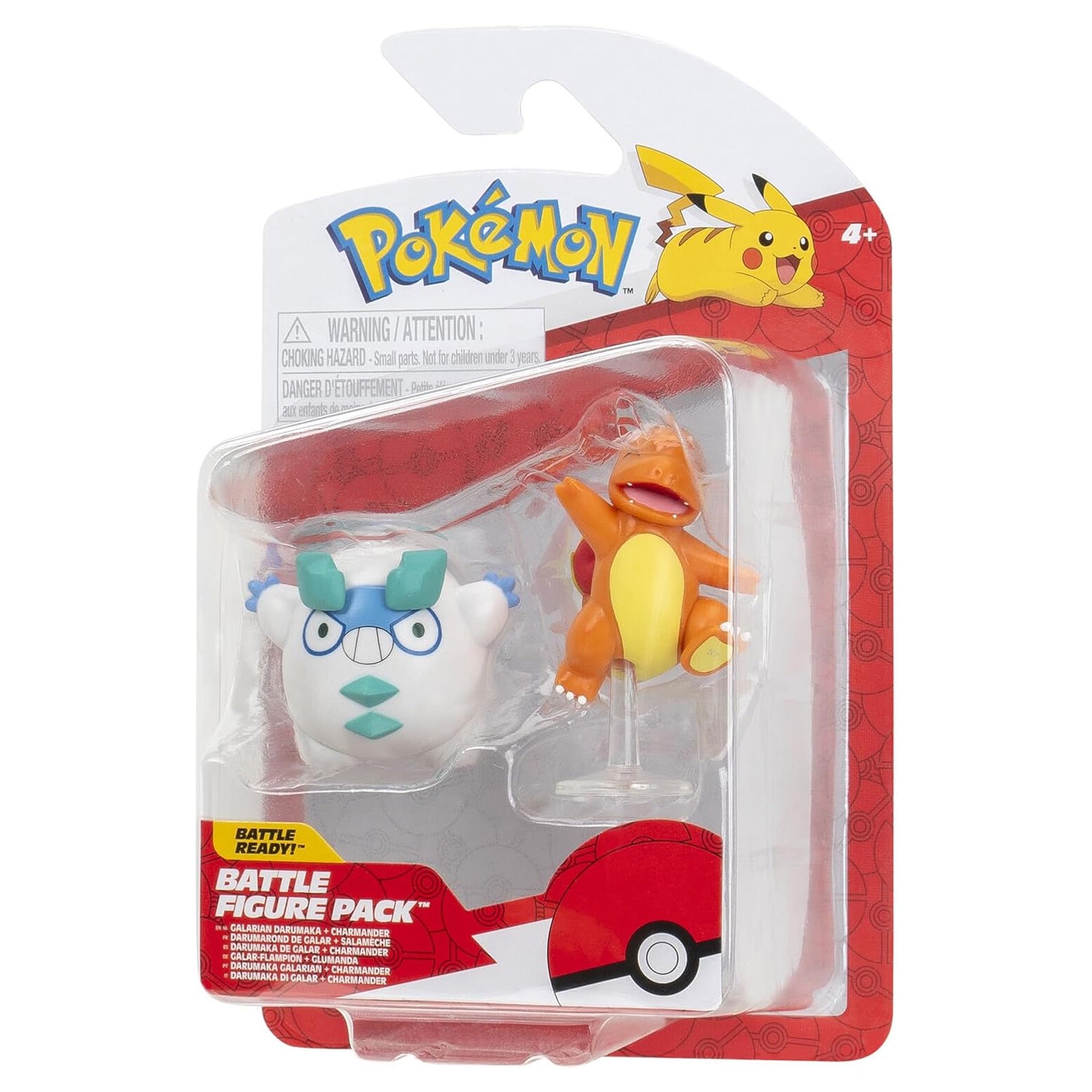 Recreate your favorite Pokémon battles with the Pokémon - Galarian Darumaka & Charmander Battle Figure 2 Pack!