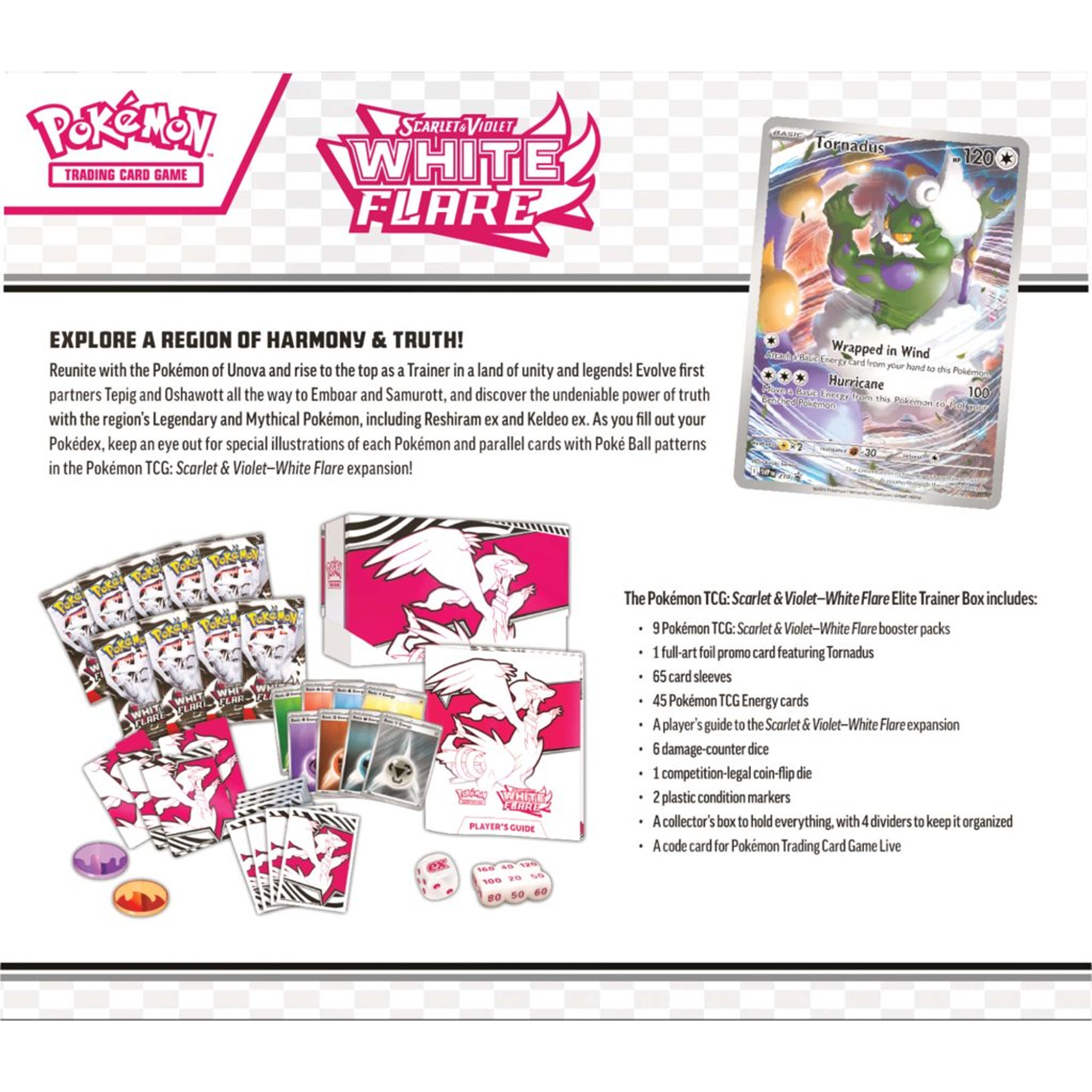 The Pokémon TCG: Scarlet & Violet - White Flare Elite Trainer Box includes:
