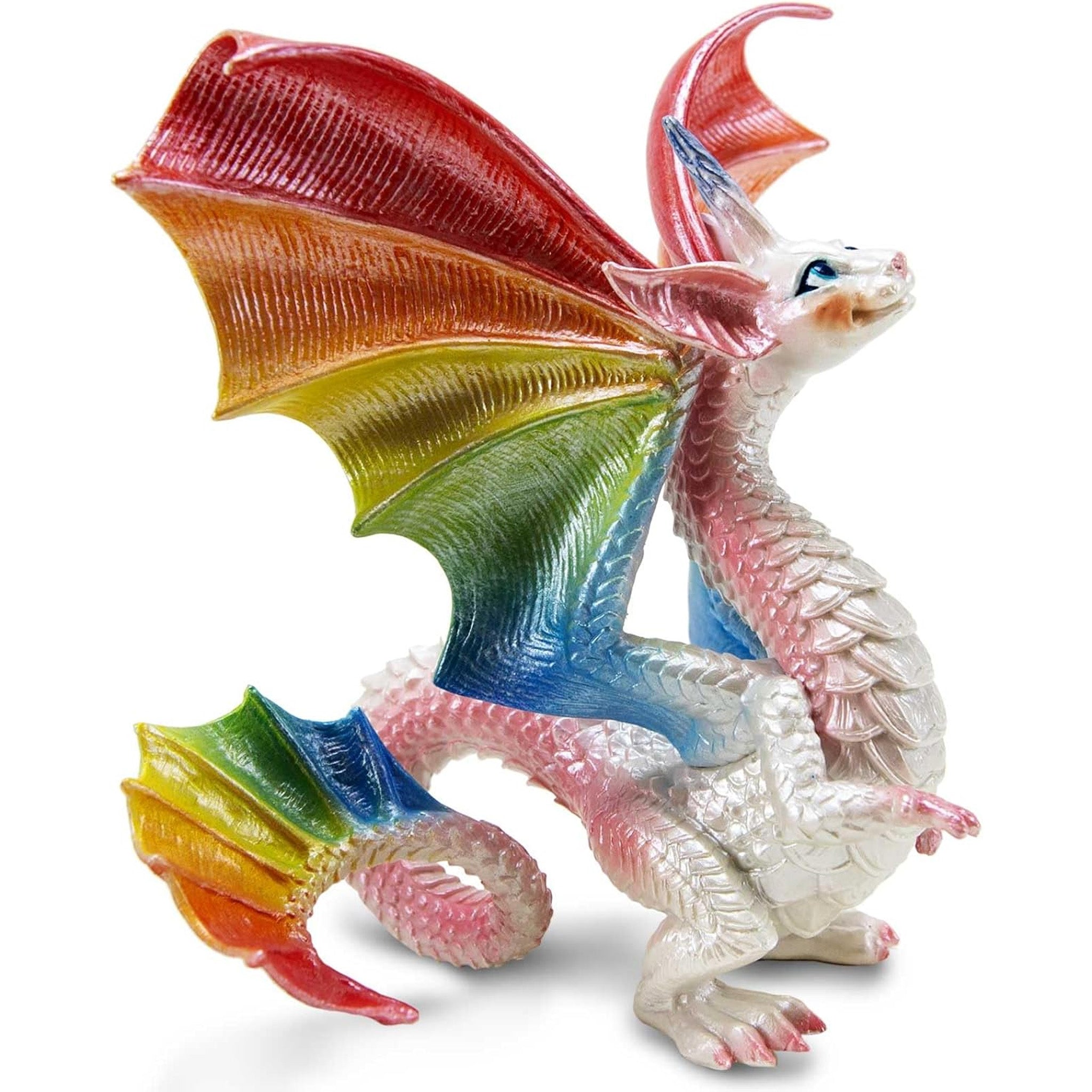 This Fairy Rainbow Dragon figurine features a pearlescent finish on its sparkling body, with rainbow hues adorning its spread wings and tail. Great for any fan of fantastical creatures!