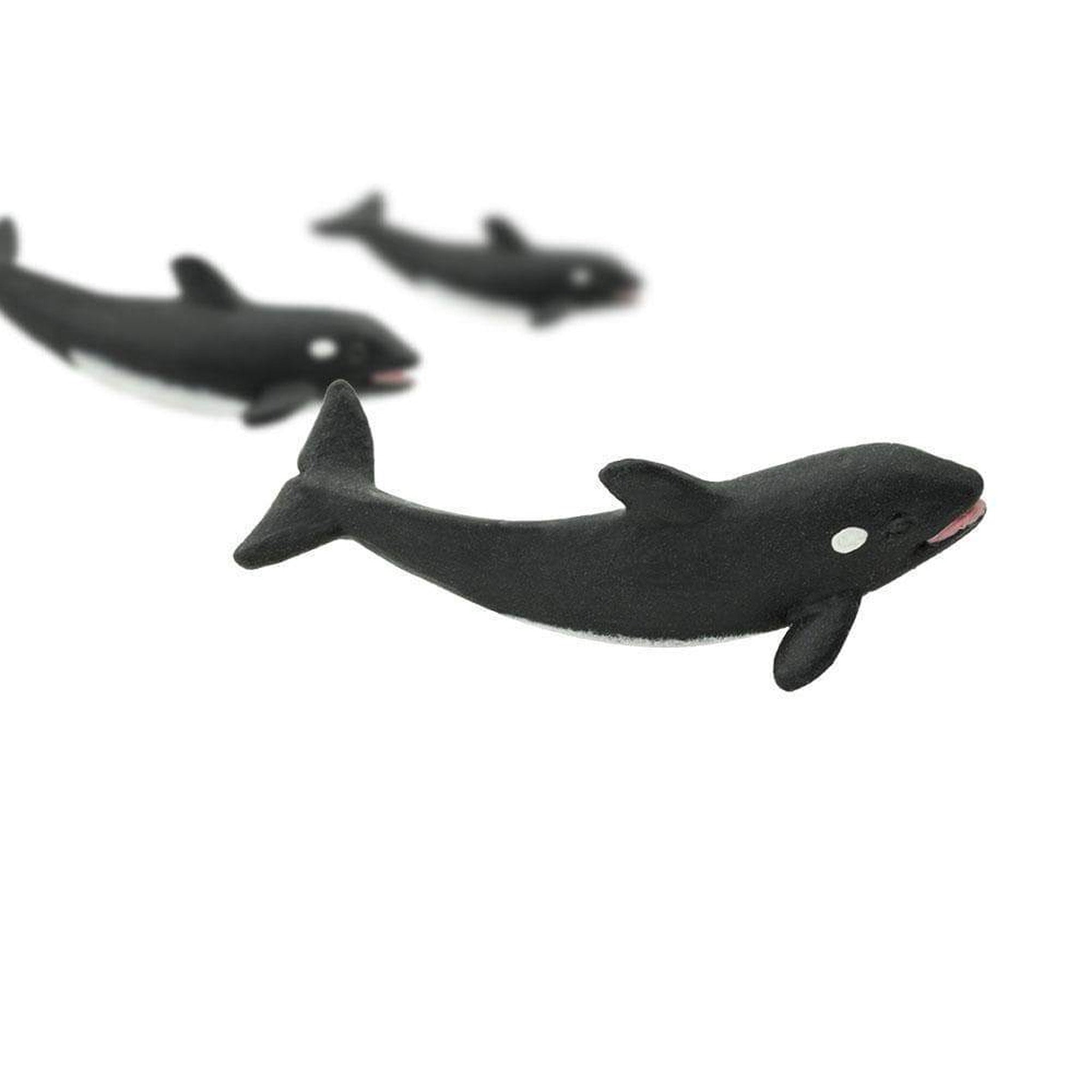 Black and white, these paperclip-length Orca mini figures are about an inch long and mimic the details of their 30-foot long cousins.