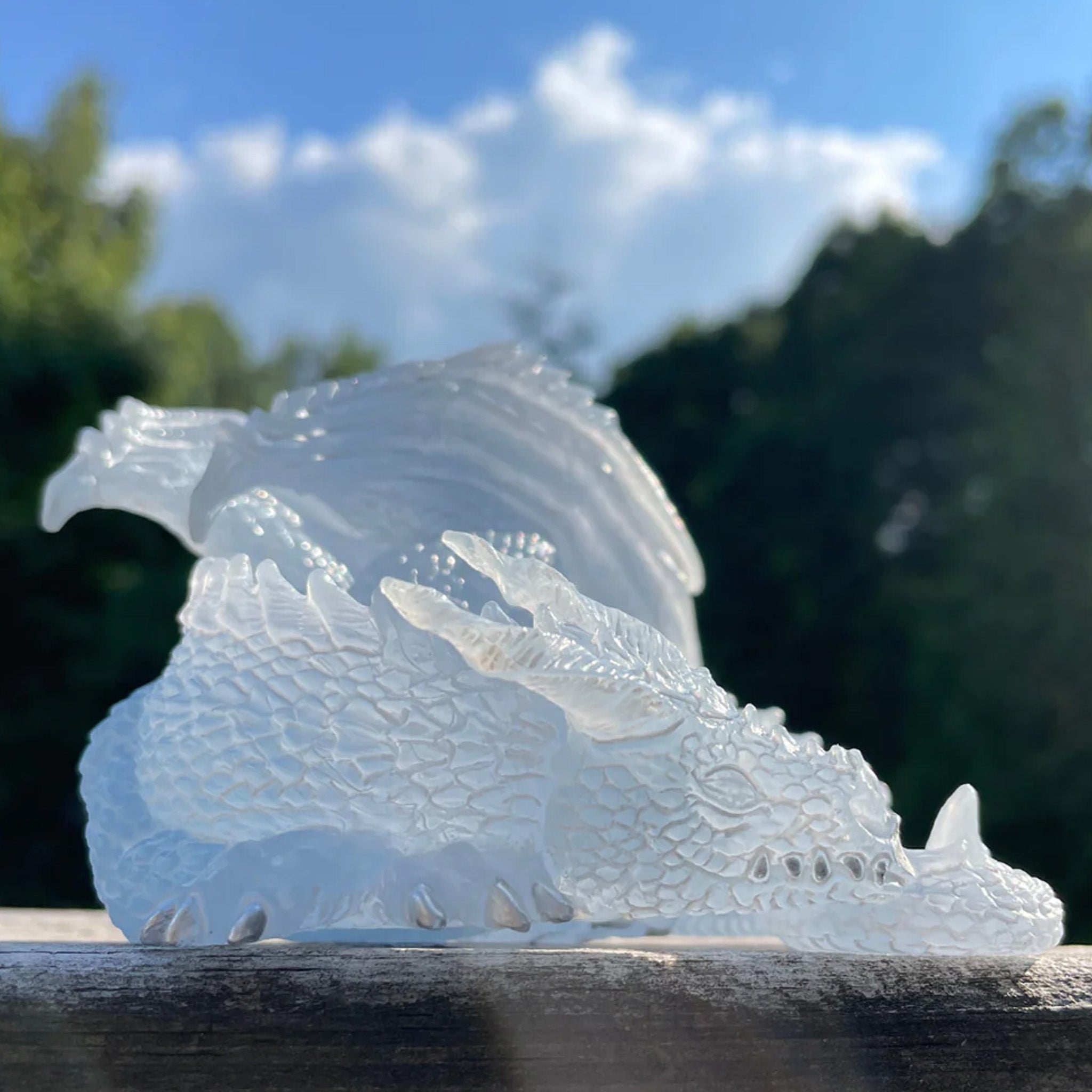 Curled up in a restful slumbering pose, this Sleepy Dragon still has one eye open, so don't try anything funny! Its body is a cool light blue with a translucent feel, and it glows strongly in the dark after exposure to light.