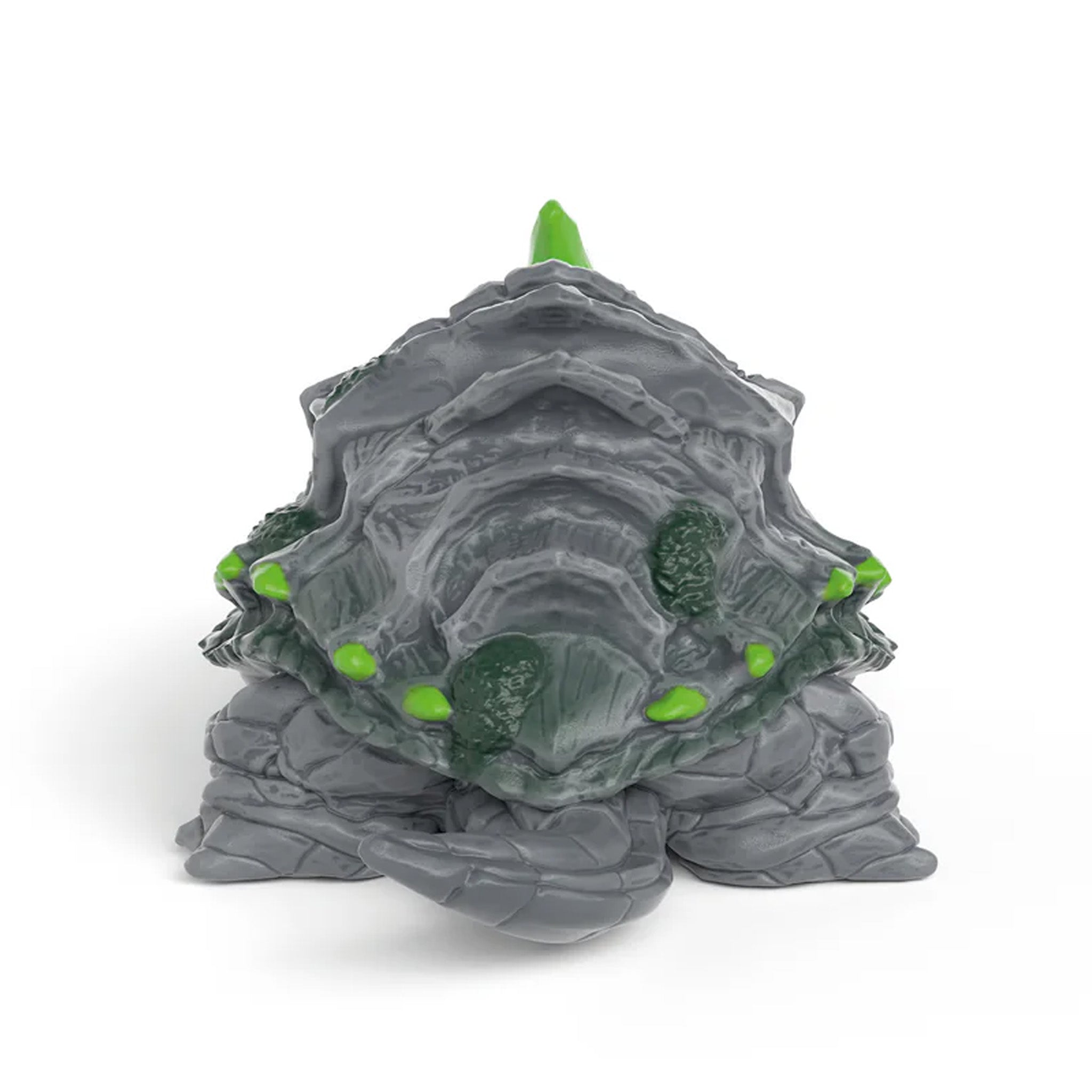 The Stone Turtle's green eyes gleam with menace. The Stone Turtle is one of the oldest inhabitants of Eldrador and has been around since ancient times. She prefers to avoid one-on-one fights and usually lives in one of the numerous caves in the Stone World. She knows them inside and out. But don't be fooled: Anyone who gets in her way will face her illuminous green horn. And she can bite too! With her thick stone armour, she is invincible. It’s best to give her some peace and leave her alone.
