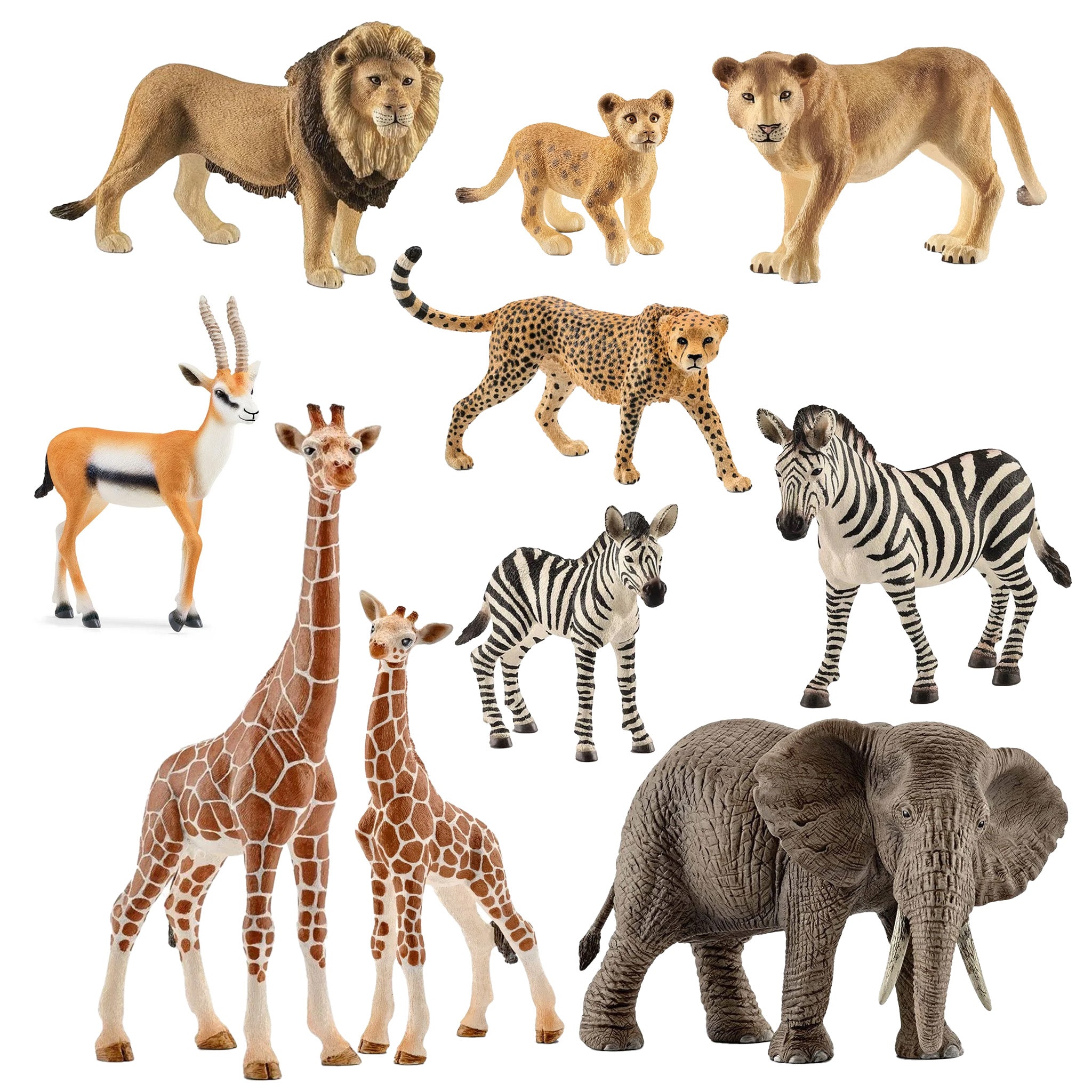 This set includes 10 African wildlife figures: