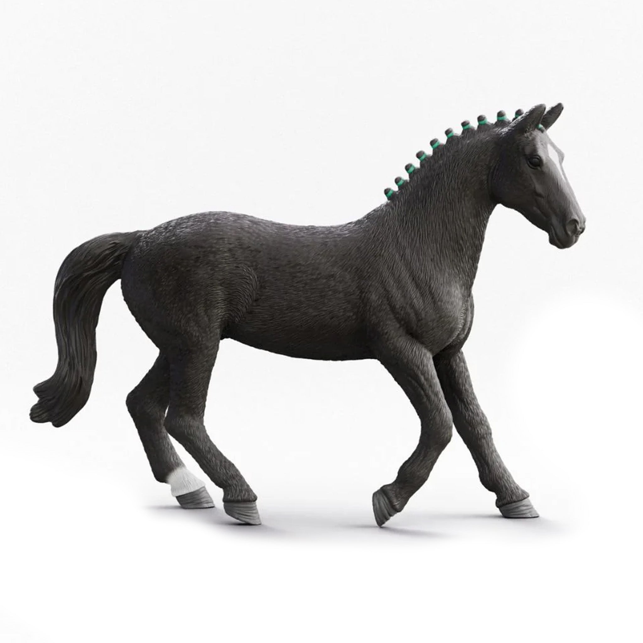 She has already won many tournaments with her Hanoverian gelding. The girl figurine is fully movable and can ride her horse after it is saddled and bridled.