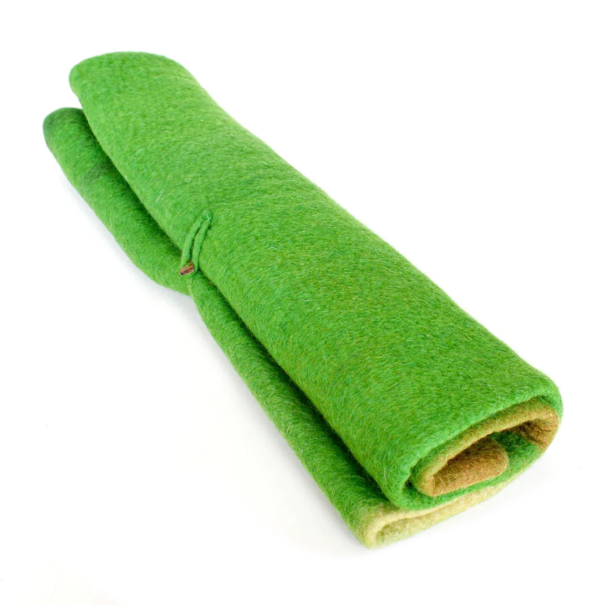 Create the perfect backdrop to an invitation to play, our felt playscapes work well with the full-sized animal figurines (from Schleich, Collecta or Safari Ltd) and wooden toys. At a length of 80cm, this Safari playscape is large enough for a full tabletop or it can be used as a floor mat. Once playing is done, the mat can be rolled up and fastened with a button (as illustrated in the image).