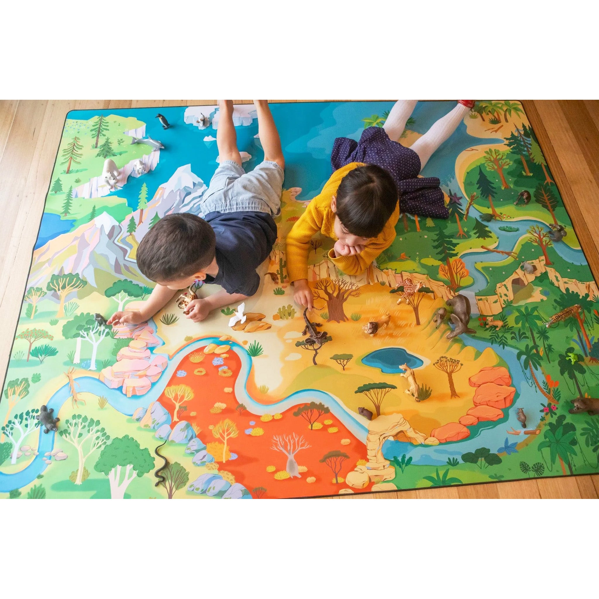 The perfect play mat for your little wildlife adventurer, the Habitat Mat Explorer mat showcases different landscapes and habitats from all over the world. While designed to be used with animal figurines, this Habitat Mat is really only as limited as your child's imagination!