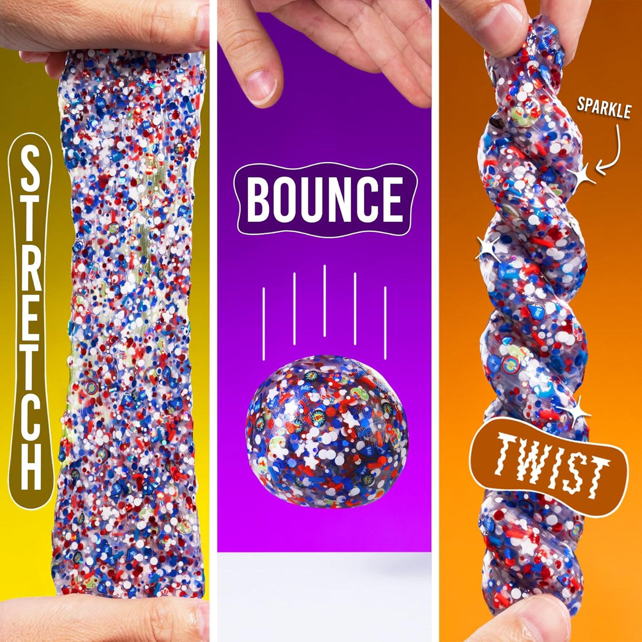 This super powered putty has all the thrilling elements of an animated picture book exploding with character pieces and call outs to stretch and smoosh for fidget WOW.