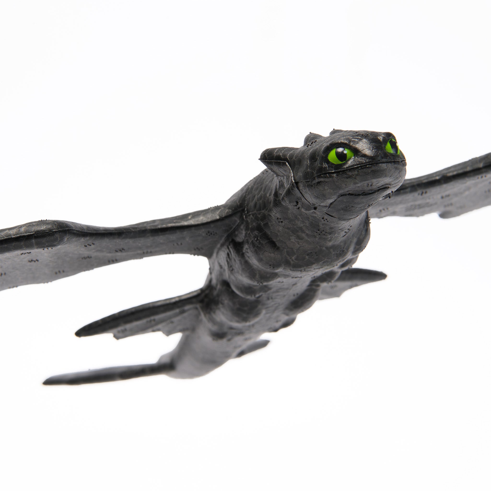 - Iconic Toothless styling, including his sleek black body, green eyes, and tail fin